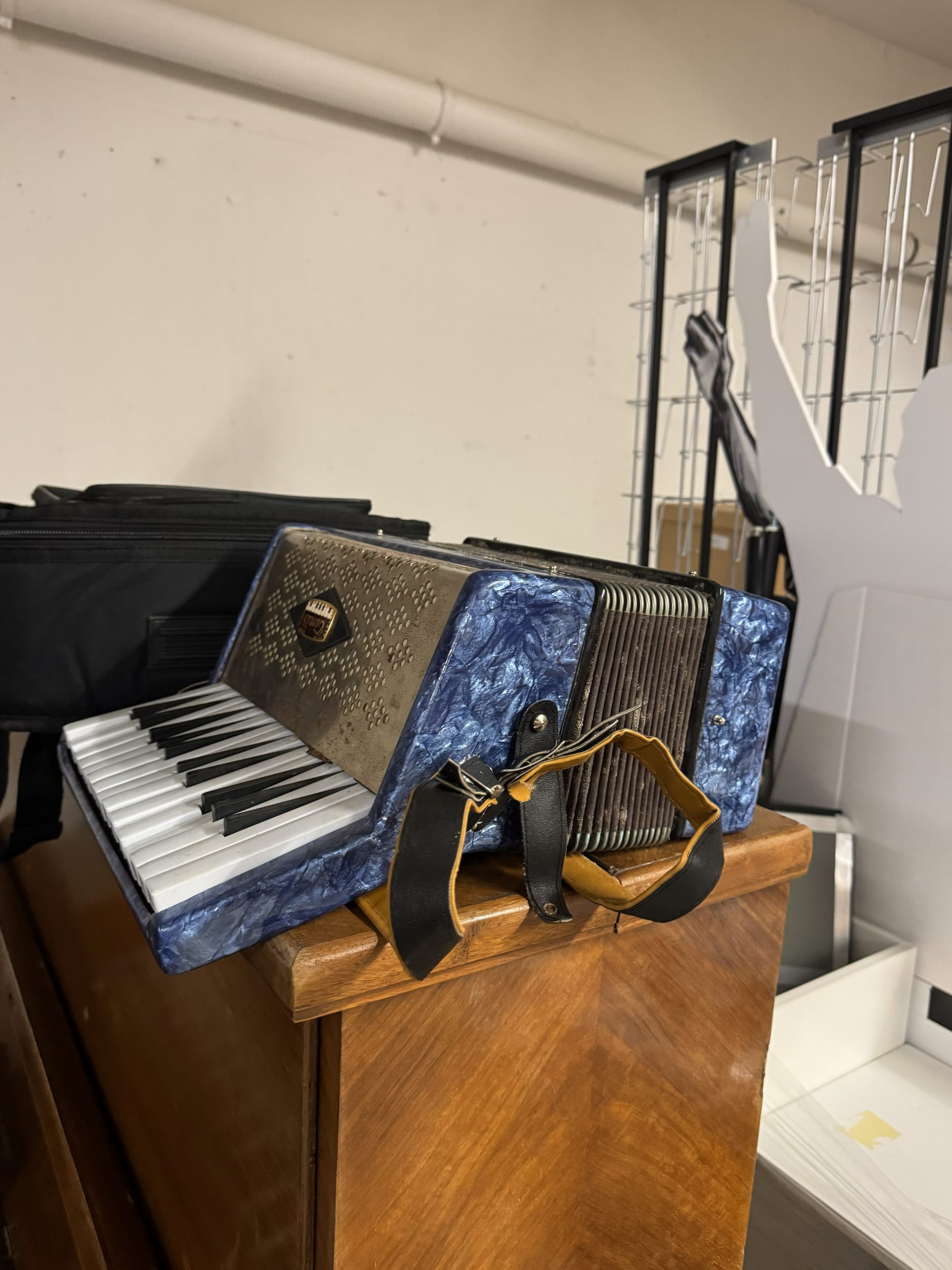 Darunter ein Klavier, eine Gitarre und ein Akkordeon. Eine alte Zither hatte ich auch im Blick, habe aber wohl leider keine Zeit mehr, diese vor der Konferenz zu beschaffen.