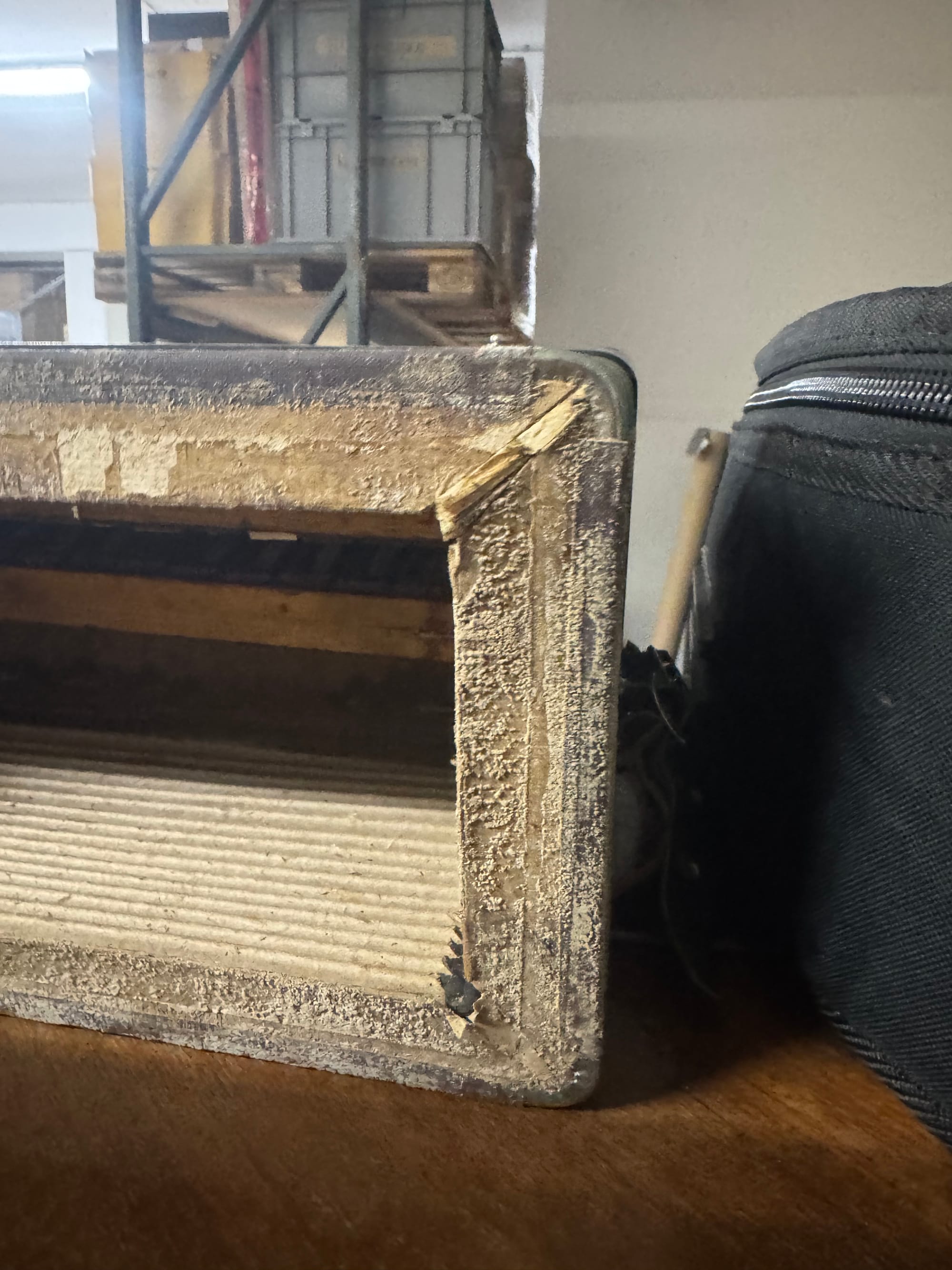 Mit etwas Holzkleber habe ich die Seiten wieder aneinandergeklebt und mit einem Pinsel vom gröbsten Dreck befreit.