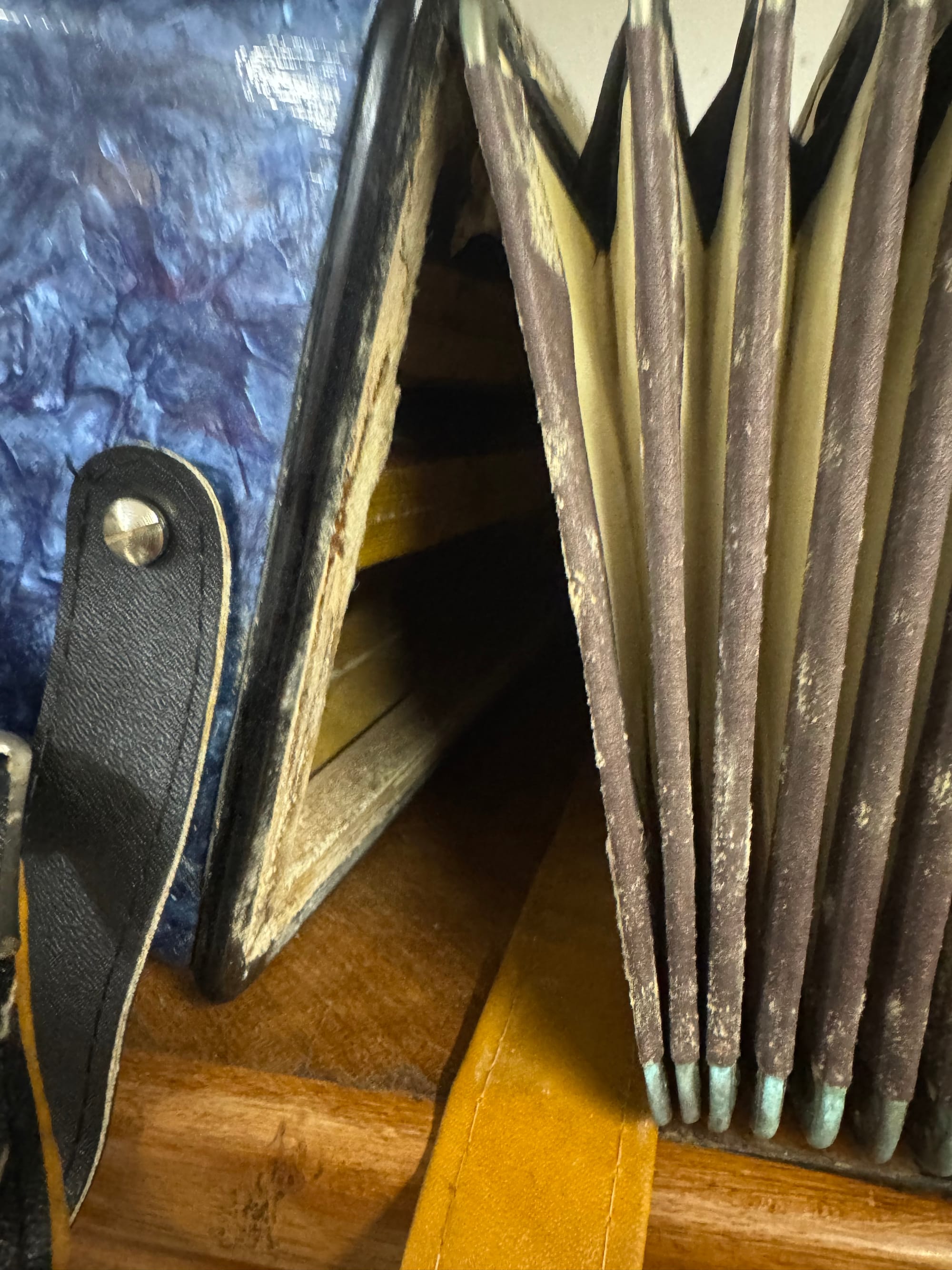 Recht schnell nach dem Kauf ist mir der starke Geruch von Keller aufgefallen, und nach ein paar Zügen des Balgs ist mir eine gesamte Seite aufgebrochen.