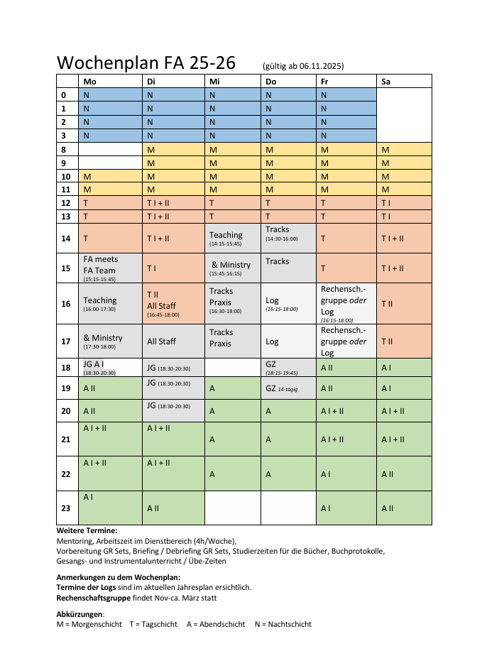Wieder aufgeteilt in Schichtgruppen A–B und C–D.