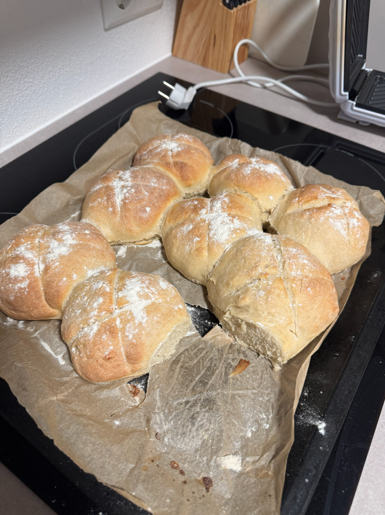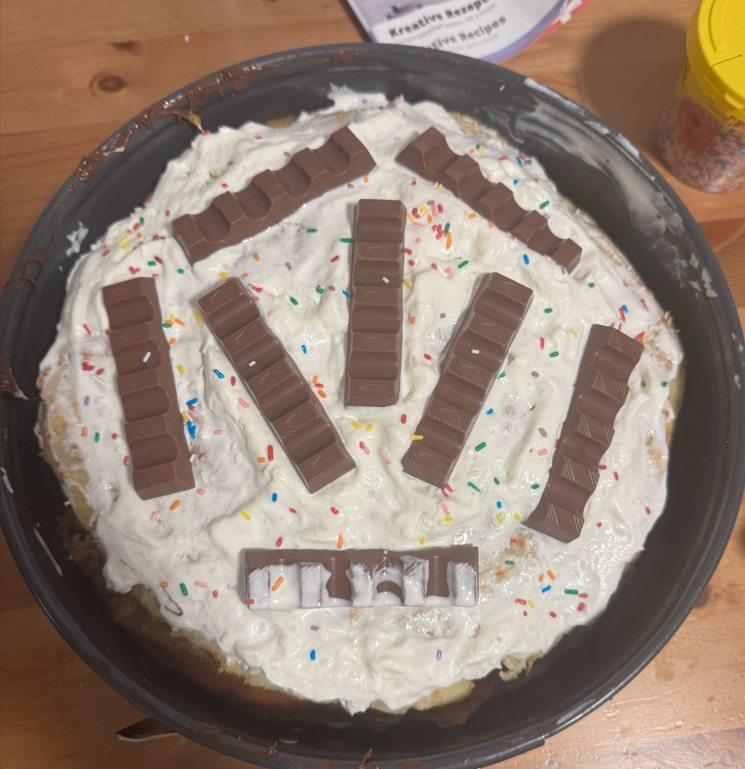 Beziehungsweise habe ich ehrlicherweise erst die Mädels in der oberen Wohnung gefragt, ob sie ihm etwas backen wollen.